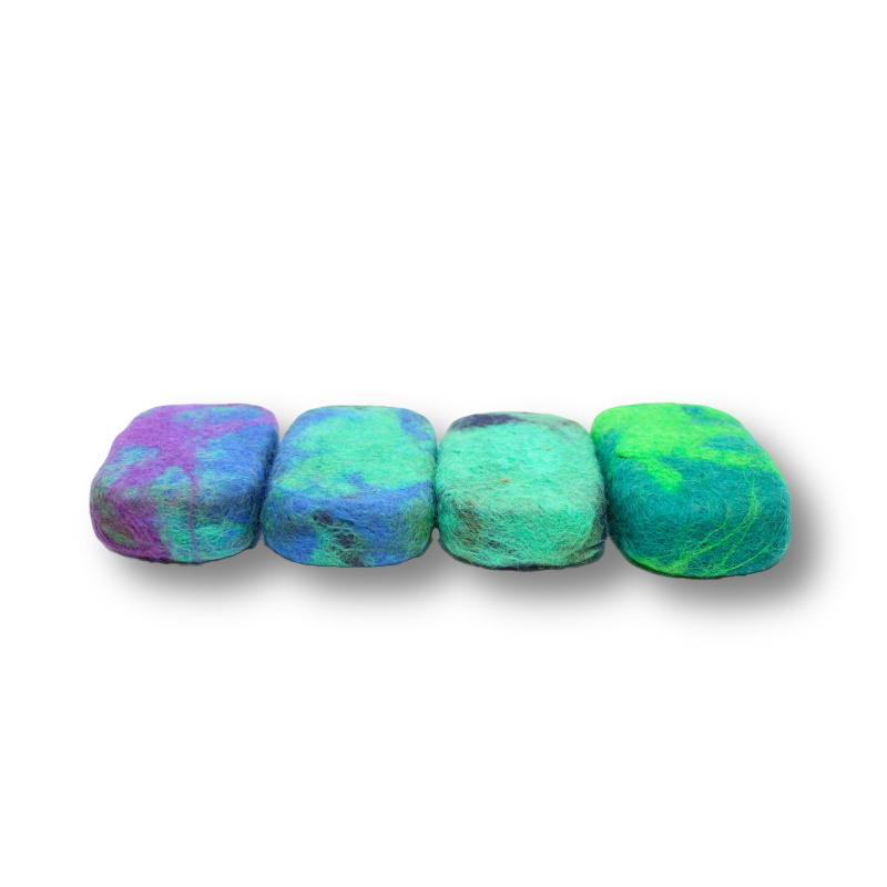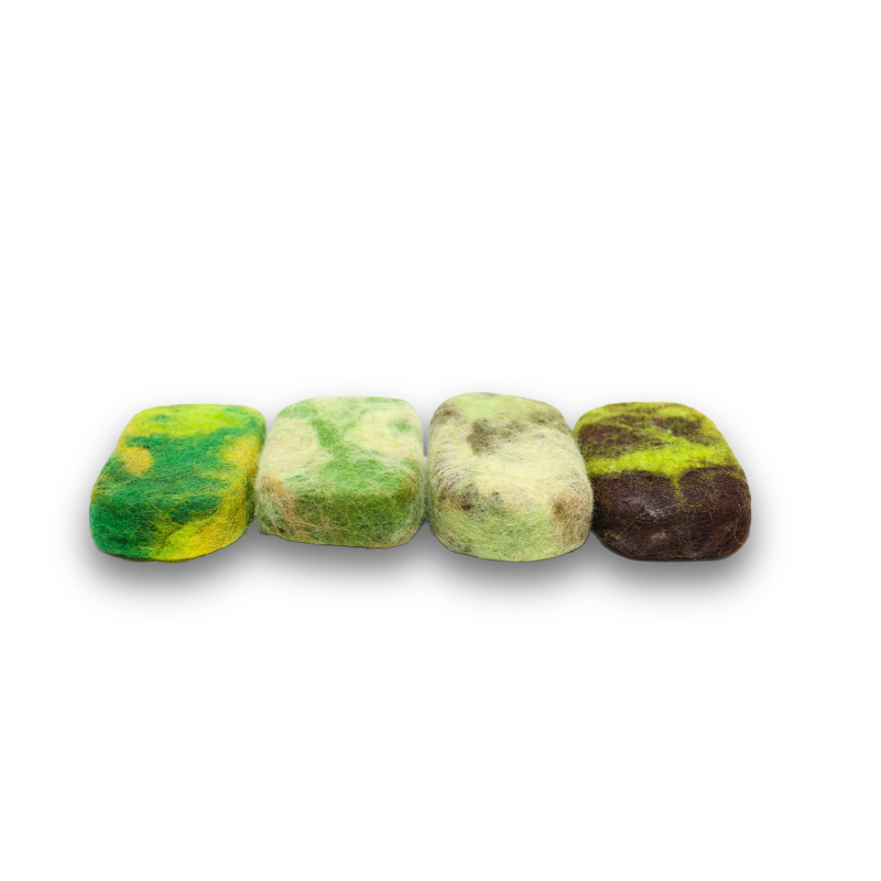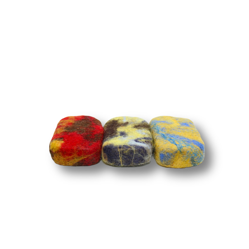 La lana de oveja recubre el jabón de propóleo y oliva para conseguir un efecto 2 en 1.